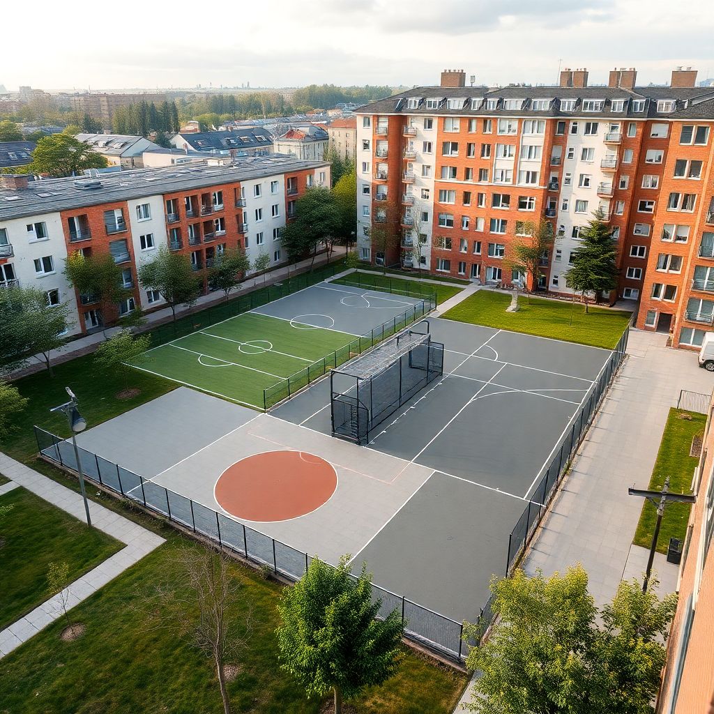 | Межквартальный спортивный центр | Командные виды спорта для нескольких кварталов или микрорайона | Комбинированные покрытия, несколько игровых полей, трибуны, освещение | Средний-повышенный | Средняя-высокая, требуется детальная увязка с транспортом и парковками |